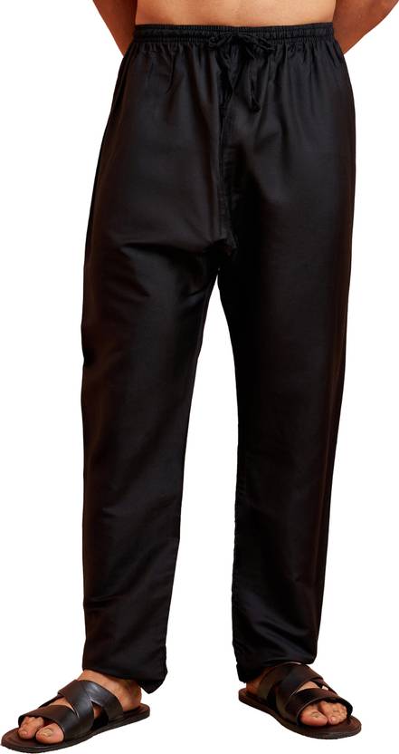 Premium quality viscose pyjama in classic black color featuring solid pattern design. Comfortable drawstring and elasticated waist ensures perfect fit. Ideal for festive occasions like Diwali, Durga Puja, EID, weddings, and casual summer wear. New Style Aligarh design combines traditional aesthetics with modern comfort.