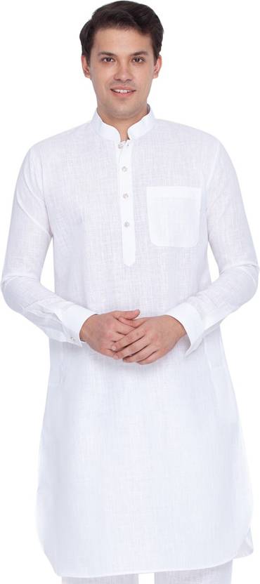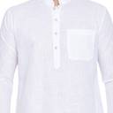 Vastramay brings to you this Stylish yet Comfortable Men White Linen Cotton Raees Style Pathani Khan Kurta. Adorn it for a perfect Classy & Trendy look. Pair it with a juti or a mojari for the Royal feel. All our kurtas have five inches loosening over the body measurement. So if your chest round measurement is 38 inches then you should go for a 38 (Medium) size Kurta which will have a garment ready chest measurement of 43 inches. We offer six sizes - Small = 36 (Chest - 41), Medium = 38 (Chest - 43), Large = 40 (Chest - 45), X- Large = 42 (Chest - 47), XX - Large = 44 (Chest - 49) and XXX - Large = 46 (Chest - 51).