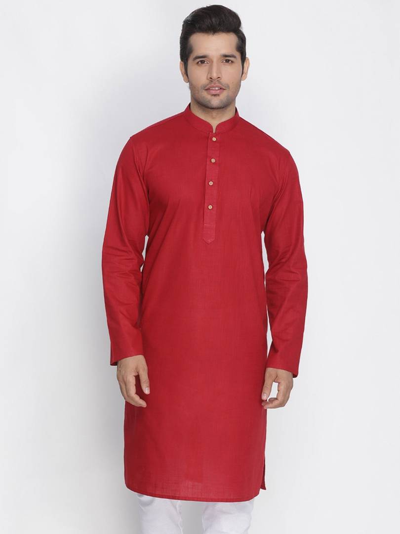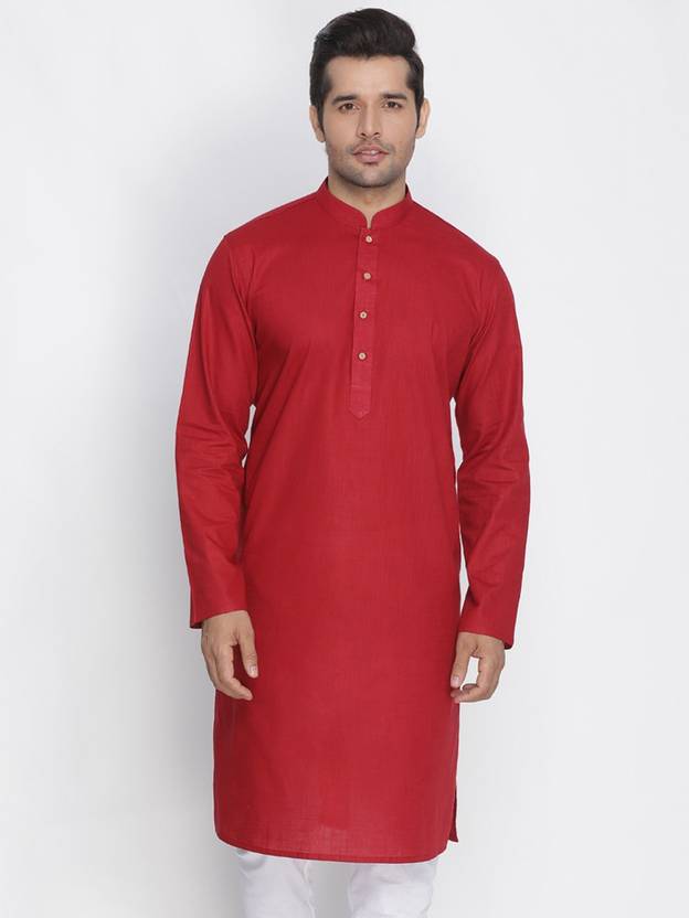 VASTRAMAY Men Solid Cotton Blend Straight Kurta (Red)