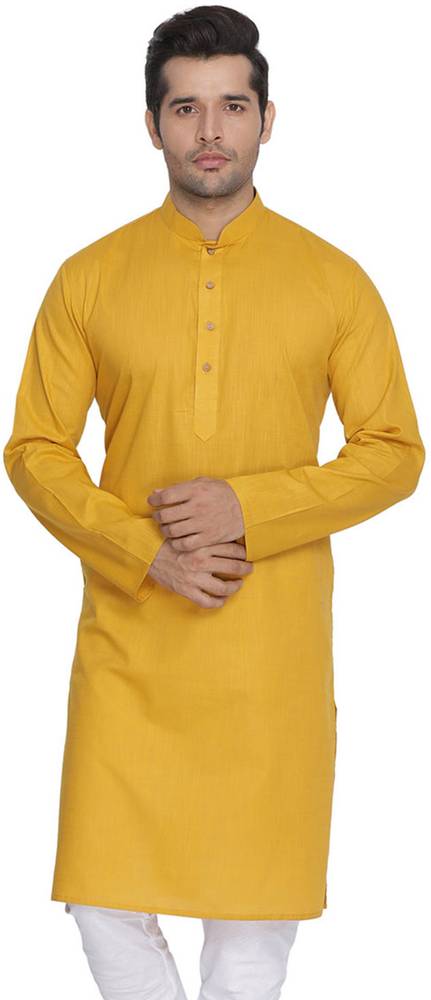 Men Solid Cotton Linen Straight Kurta (Yellow)