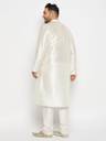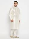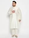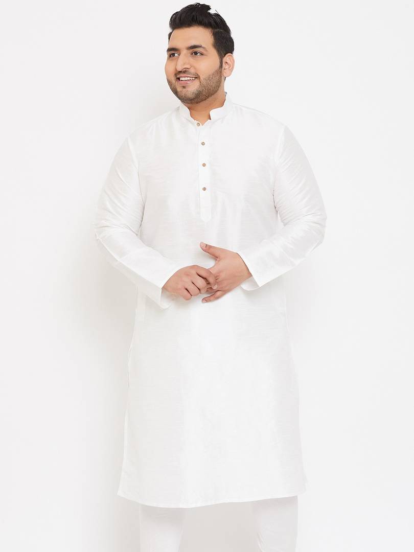 Fabric: Silk Blend | Contents: A Silk Blend Soft Comfortable Feel Solid Kurta and Pant Style Pyjama SetSilk Blend Soft Comfortable Feel Solid Kurta and Pant Style Pyjama SetAll our kurtas have five inches loosening over the body measurement. So if your chest round measurement is 46 inches then you should go for a 46 (3XL) size Kurta which will have a garment ready chest measurement of 51 inches. We offer six sizes - XXL= 44 (Chest - 49), 3XL= 46 (Chest - 51), 4XL= 48 (Chest - 54), 5XL = 50 (Chest - 56), 6XL = 52 (Chest - 58) and 7XL = 54 (Chest - 60). Disclaimer: We have made a consistent effort to make the colors and finishes similar to the image of the products you see on screen. However, the actual product and the images on the website can differ! Customer's discretion is advised.Suitable for: Party, Weddings, Regular Wear, Celebrations, Occasions, Festivals, Lohri, Pongal, Makar Sakranti, Baisakhi, Holi, Eid, Raksha Bandhan, Dussehra, Diwali, Navratri, Pooja, Christmas, Onam, Ganesh Chaturthi, Janmasthmi and Gifts for Mens.Wash Care Instructions: Dry Clean preferably or cold light wash.