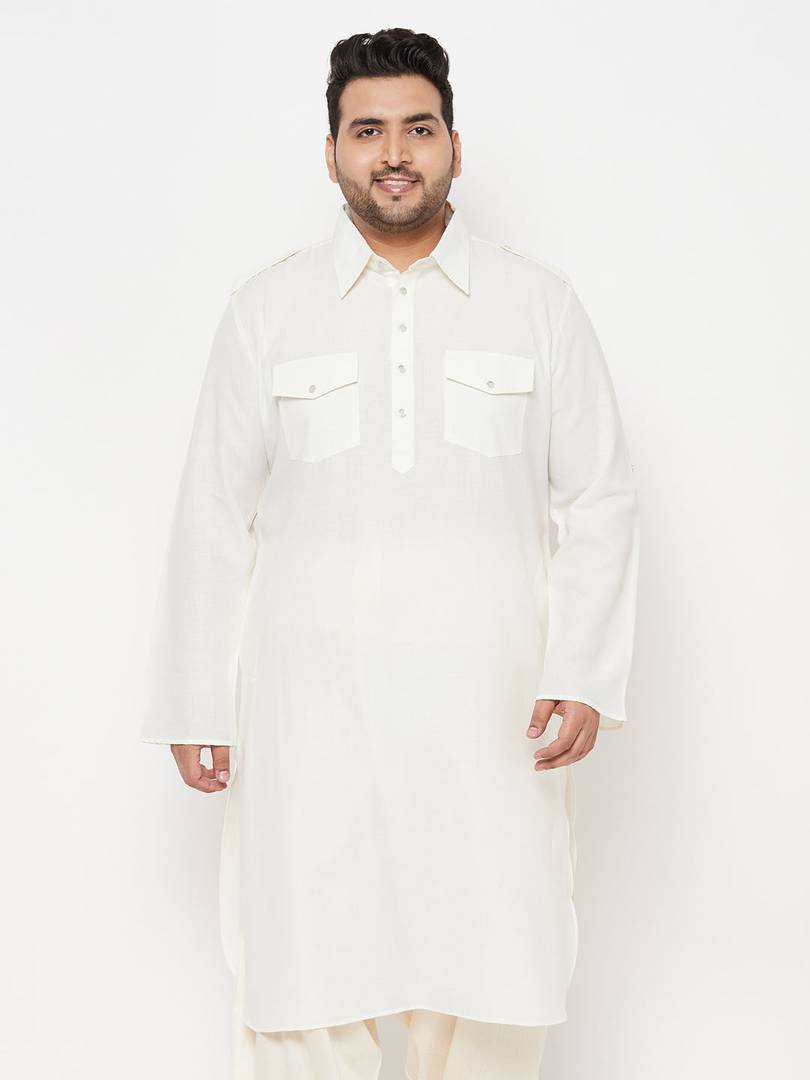 VASTRAMAY PLUS Men Solid Pathani Kurta (Beige)