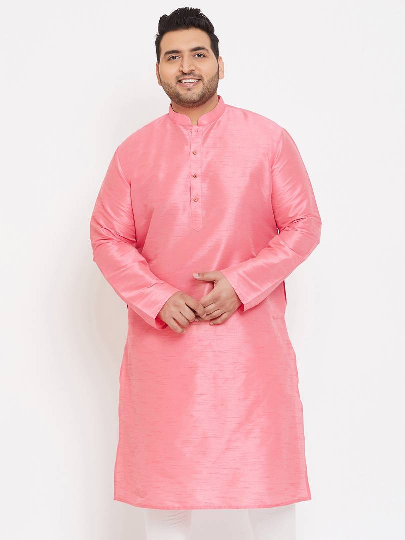 VASTRAMAY PLUS Men Solid Straight Kurta (Pink)