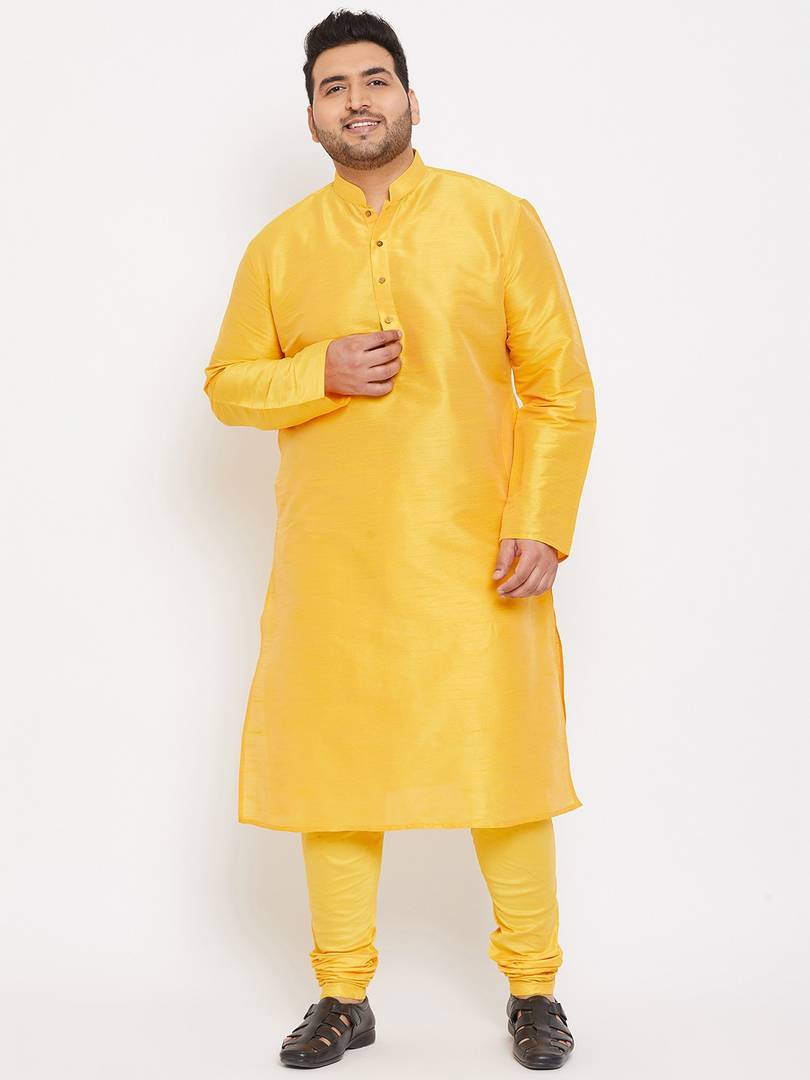 VASTRAMAY PLUS Men Solid Straight Kurta (Yellow)