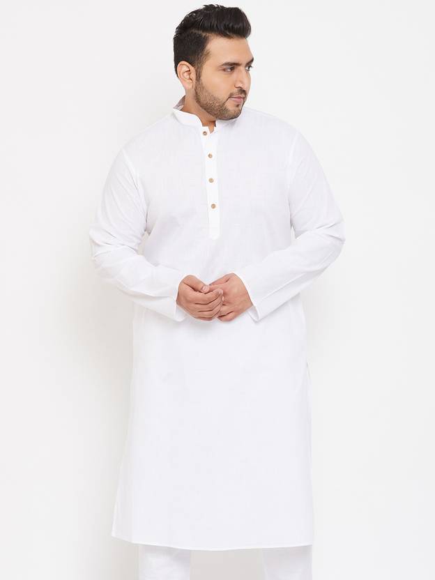 VASTRAMAY PLUS Men Solid Straight Kurta (White, Yellow)