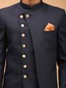 Fabric: Cotton Blend | Contents: a Trend setting Men's Indowestern Style Asymmetric Sherwani made of imported high quality suiting fabric with double flap And Golden Buttons.Trend setting Men's Indowestern Style Asymmetric Sherwani made of imported high quality suiting fabric with double flap And Golden Buttons.All our Sherwanis have four inches loosening over the body measurement. So if your chest round measurement is 38 inches then you should go for a 38 (Medium) size Kurta which will have a garment ready chest measurement of 42 inches. We offer six sizes - Small = 36 (Chest - 40), Medium = 38 (Chest - 42), Large = 40 (Chest - 44), X- Large = 42 (Chest - 46), XX - Large = 44 (Chest - 48) and XXX - Large = 46 (Chest - 50).Vastramay introduces to you these classy sherwani for men stylish latest design in variety of material and designs for all occassions. This men's ethnic wear fabric has been designed keeping in mind the latest trends in a semi formal fashion or occassional fashion. Engineering garments which fit all body types and style is our aim. We offer not just servani for man for wedding but also indo western for men and semi sherwani as well covering the entire space. Our servani are constructed in such a way that you can adorn it with a churidar, dhoti for men or a patiala too. To complete the look adorn a mojari or jutti slippers for men stylish, you may also try an authentic Kohlapuri chappal for men, the fashionistas and millennial folks may experiment with a brogues or oxfords juta for men stylish. Suitable for: Party, Weddings, Sangeet, Mehandi, Regular Wear, Celebrations, Occasions, Festivals, Lohri, Pongal, Makar Sakranti, Baisakhi, Saraswati Puja, Holi, Ugadi, Jamai Sasthi, Eid, Raksha Bandhan, Dussehra, Diwali, Navratri, Pooja, Christmas, Onam, Ganesh Chaturthi, Janmasthmi and Gifts for Men.Disclaimer: We have made a consistent effort to make the colors and finishes similar to the image of the products you see on screen. However, the actual product and the images on the website can differ! Customer's discretion is advised. Wash Care Instructions: Dry Clean preferably or cold light wash