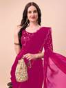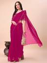 • Subtle Border: The saree may feature a very thin, understated border that frames the edges. This border could be a simple satin piping, a fine zari line, or a delicate sequin work that complements the blouse's embroidery.