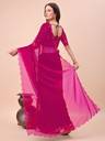 • Color Palette: The saree's color palette is chosen to complement the shimmer effect. It might be a classic metallic shade like silver, gold, or champagne, a pastel hue such as blush pink, mint green, or sky blue, or a deeper jewel tone like emerald or sapphire. The solid or lightly textured color allows the shimmer to be the main focus.