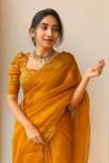 • Graceful Combination: The ensemble perfectly balances the understated glamour of the shimmer saree with the rich, detailed beauty of the embroidered blouse. It’s a complete look that requires minimal accessorizing. A pair of elegant earrings and a simple bracelet are often all that's needed to complete the ensemble, allowing the outfit itself to be the main statement.
