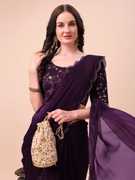 This exquisite saree ensemble is a celebration of modern elegance and traditional craftsmanship, designed for the woman who appreciates both subtle glamour and intricate detail. The combination of a shimmering saree and a meticulously embroidered blouse creates a look that is both sophisticated and captivating.