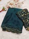This elegant chiffon saree features a simple, flowing design. Paired with a embroidered blouse, the saree is 5.50 meters long, and the blouse measures 0.80 meters.