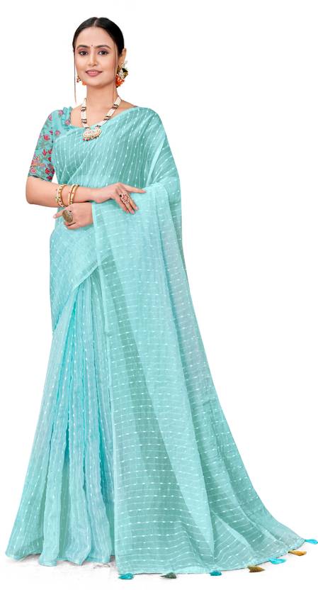 Vastramela Self Design Banarasi Net Saree (Blue)