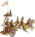 There are many love, hatred and friendship stories we can find in the great Indian epic Mahabharata. However, the relation Lord Krishna and Pandava Arjun shared was special. The tales of their bond is talked about in many different stories throughout the Mahabharata particularly in the stories of The Burning of the Khandava Forest, as well as the Great War of Kurukshetra. Krishna Arjuna Rath Antique Show piece idol is made of brass. Bring it home and get the divine blessings of the Lord. It is crafted from brass with a highly polished look. Carved intricately with fine details. Be sure to fill your life with happiness and prosperity if you gift it to your loved ones or if you own one for yourself. This beautiful and elegant figure is flawless for your home decoration. Suitable for both interior and exterior dcor.