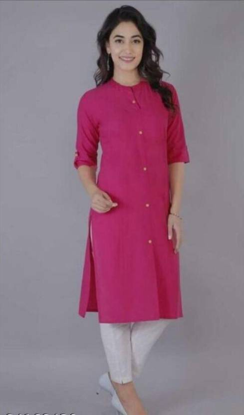 Women Solid Viscose Rayon Frontslit Kurta (Pink)