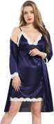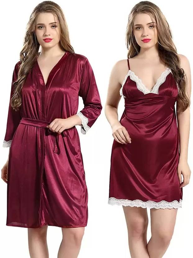 Fashion Count Women Nighty with Robe (Maroon, White)