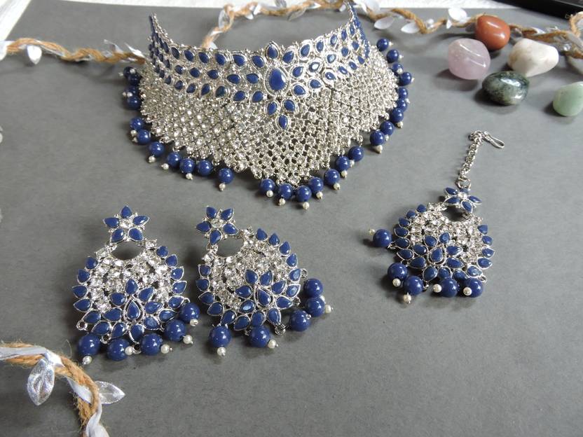 VATSALYA creation Alloy Gold-plated Blue Jewellery Set (Pack of 1)