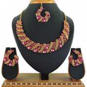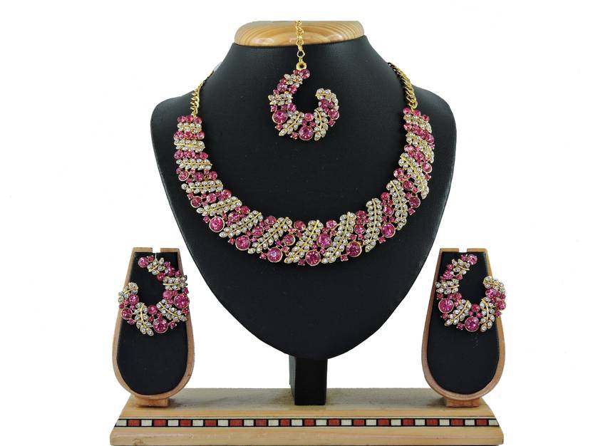 VATSALYA creation Alloy Gold-plated Pink Jewellery Set (Pack of 1)
