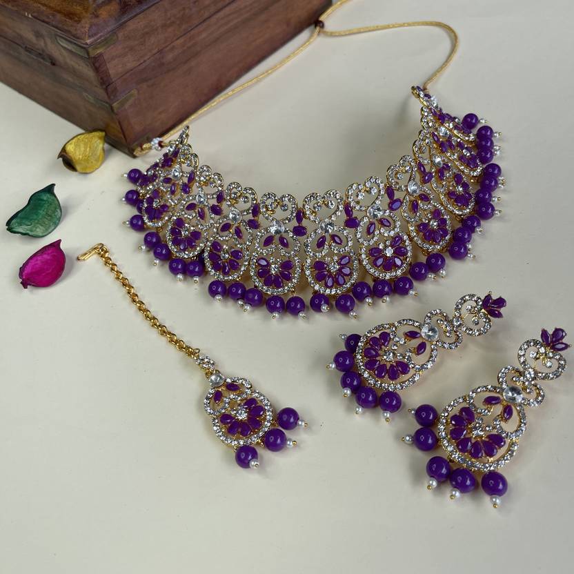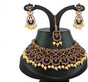 VATSALYA creation Alloy Gold-plated Purple Jewellery Set (Pack of 1)