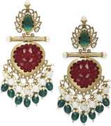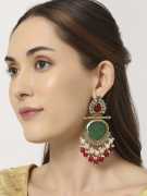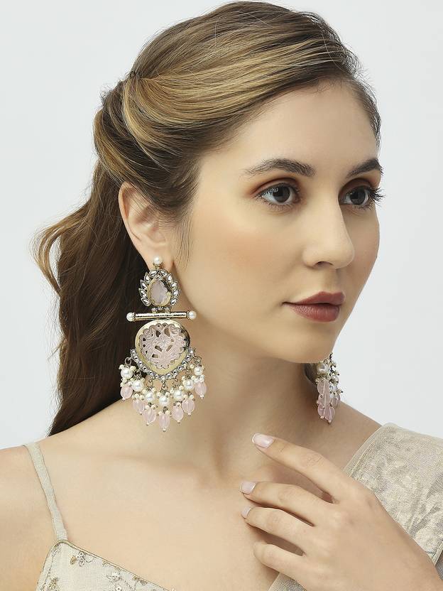 VATSALYA creation Pink Carving Stone Elegant Alloy Chandbali Earring