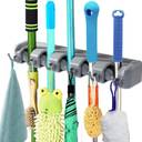 None Slide Design Broom Holder - The broom holder wall mount is made of high quality ABS material. Thanks to the spring loaded, double rubber gripped slots, whether wet mops, dirty rakes or baseball bats, nothing slips from our mop and broom holder wall mount.