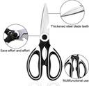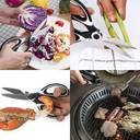 Multifunction Shears: Kitchen shears can be used to cut meat, Turkey, seafood, herbs, vegetables, fruits, noodles, pizza, paper, hard cardboard, and pruning rose pedicels, etc. No chopping board and chopper are needed to bring more convenience for kitchen work.