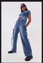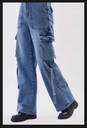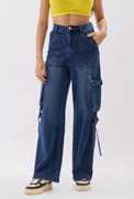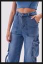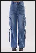 These stylish denim cargo pants feature a relaxed fit and are crafted from high-quality, durable denim fabric. The design includes multiple utility pockets with secure flap closures, adding both functionality and a trendy aesthetic. The wide-leg silhouette pairs well with the rugged look, while the adjustable side straps provide an edgy, contemporary touch. Perfect for casual outings or streetwear ensembles, these pants are versatile enough to combine comfort with a bold statement. Pair them with boots or sneakers for a complete look.