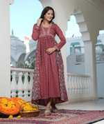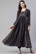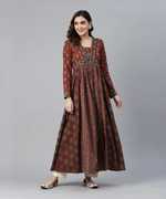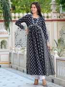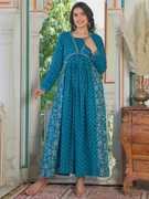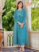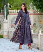 Elevate your ethnic wardrobe with this stunning Lavender Cotton Printed Anarkali Kurta. Crafted from premium quality cotton, this kurta ensures a comfortable fit while exuding elegance and charm. The serene aqua color, complemented by intricate prints, adds a touch of sophistication to your ensemble.