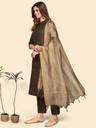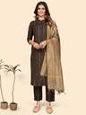 Vbuyz Women'S Printed Straight Cotton Blend Brown Stitched Kurta Pant With Dupatta