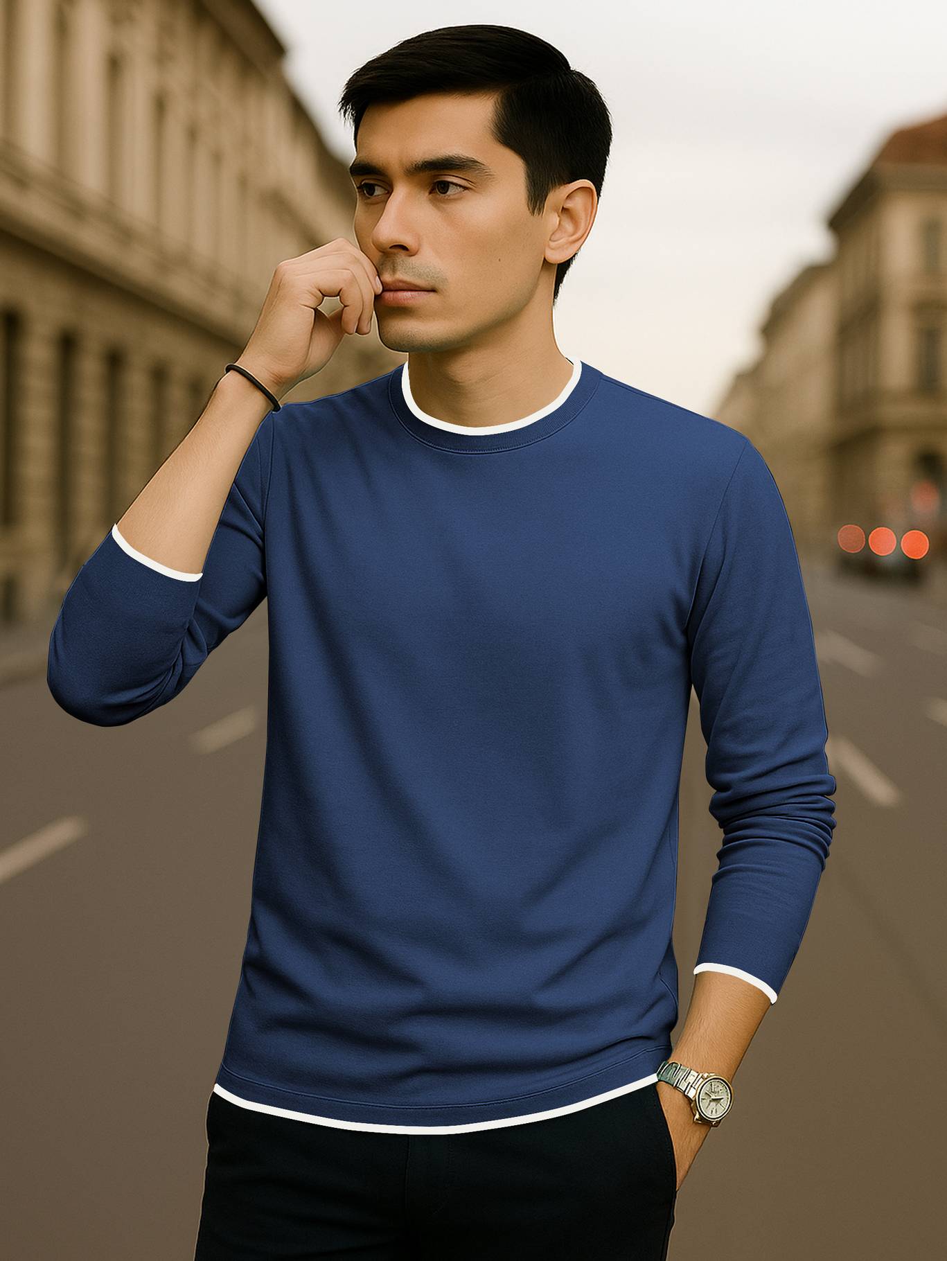 VCANEE Solid Men Round Neck Dark Blue T-Shirt