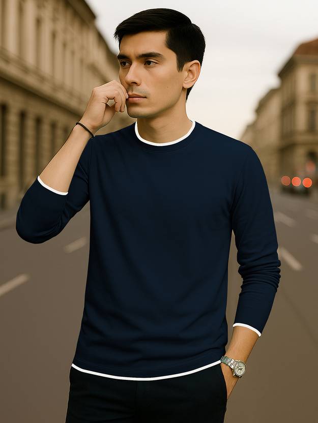 Elevate your everyday style with this solid full sleeve round neck t-shirt, crafted from premium-quality 100% cotton for exceptional comfort and breathability. Designed with a modern slim fit, this tee offers a clean, streamlined silhouette that’s perfect for layering or wearing on its own.