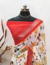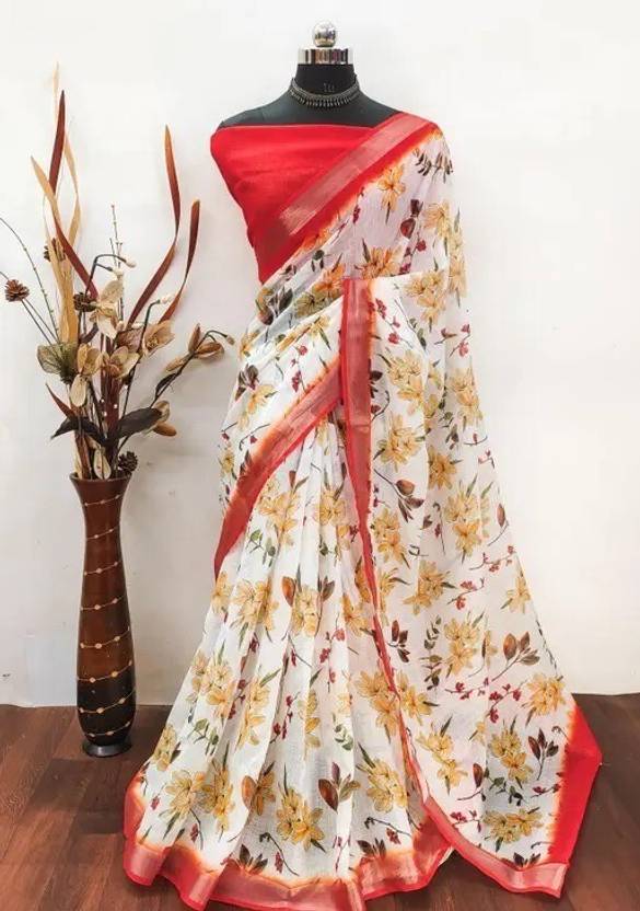 VCREATION Digital Print Bollywood Linen Saree (White)
