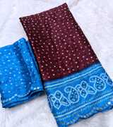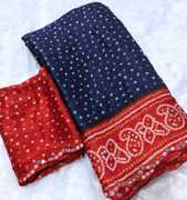 VD PRINTS Printed Bandhani Silk Blend Saree (Blue, Maroon)