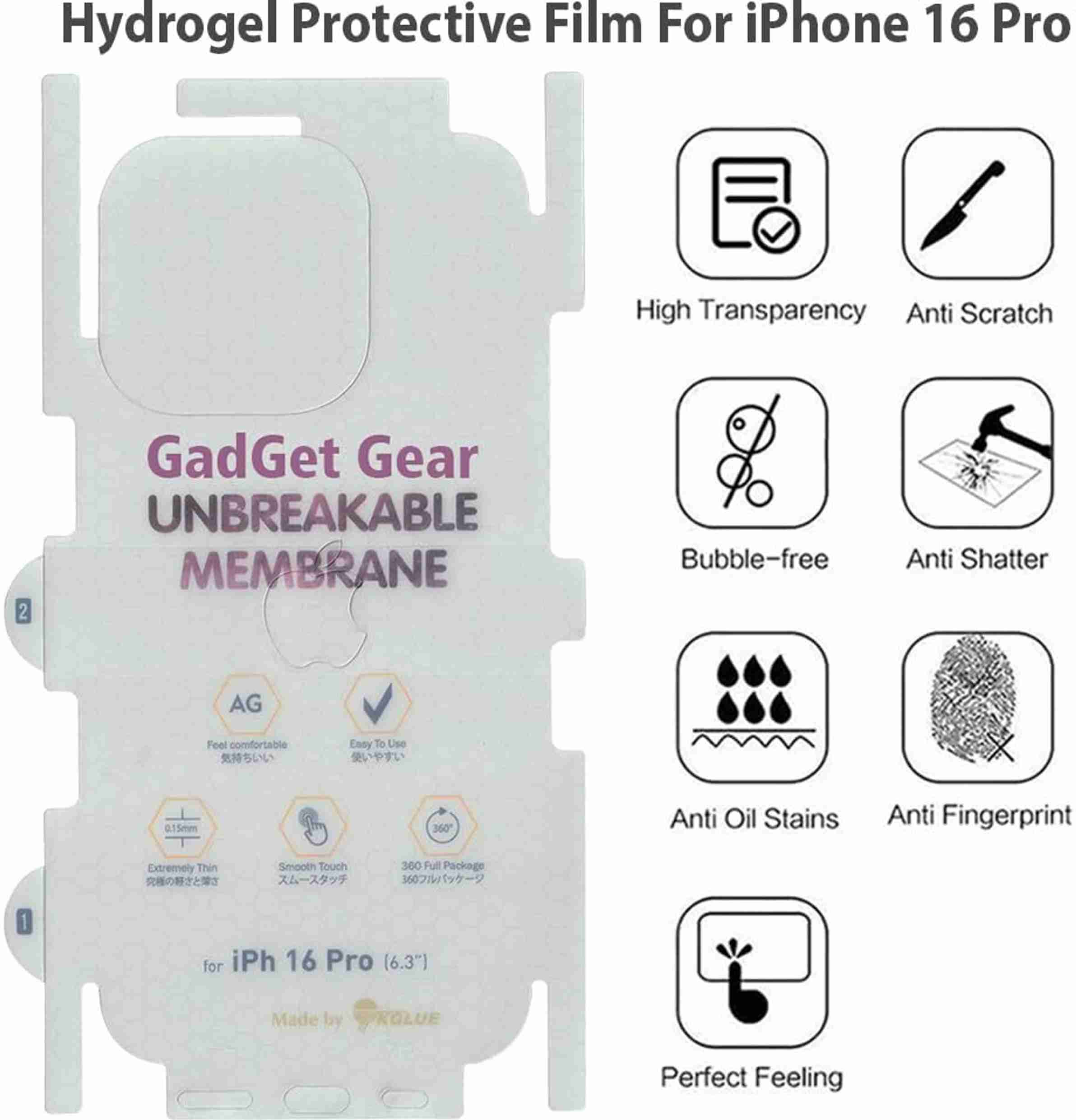 Back Screen Guard for Apple iPhone 16 Pro, iPhone 16 Pro, (FULL) (Pack of 1)