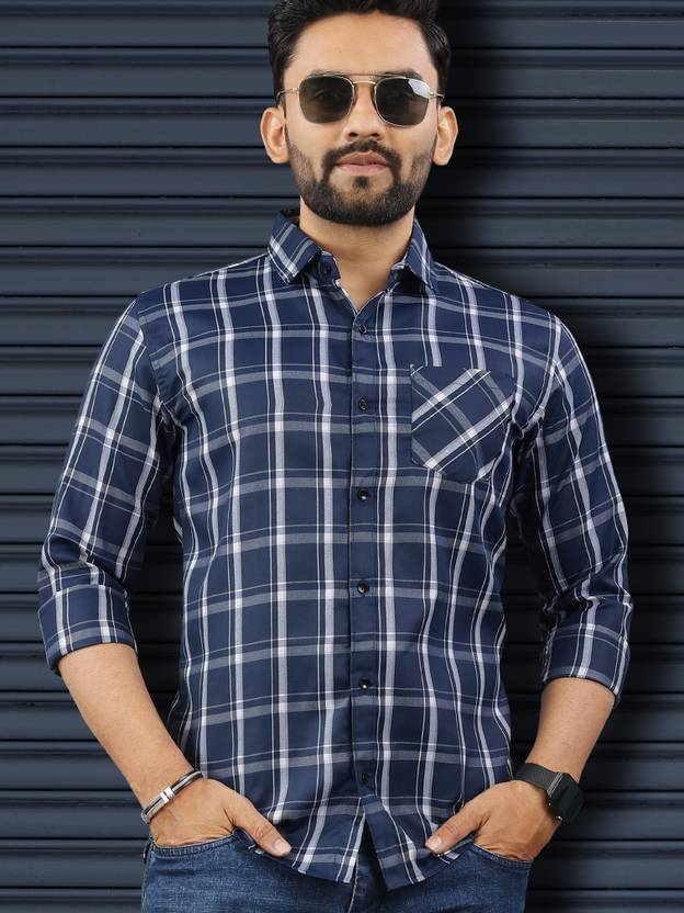 VeBNoR Men Regular Fit Checkered Spread Collar Casual Shirt