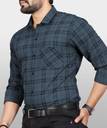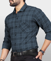 VeBNoR Men Checkered Casual Dark Blue Shirt