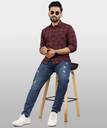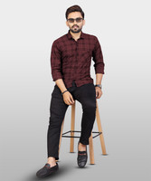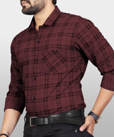 VeBNoR Men Checkered Casual Maroon Shirt