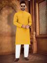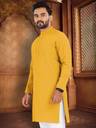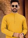 Boasting a sophisticated pattern, this kurta-pyjama for men effortlessly bridges the gap between casual and refined aesthetics. The tasteful design of this mens kurta adds visual interest without overpowering your ensemble, allowing for versatile styling options suitable for various occasions, from casual outings to festive gatherings. This kurta-pyjama for mens festival is suitable ethnic wear for traditional occassions.