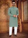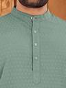 Boasting a sophisticated pattern, this kurta-pyjama for men effortlessly bridges the gap between casual and refined aesthetics. The tasteful design of this mens kurta adds visual interest without overpowering your ensemble, allowing for versatile styling options suitable for various occasions, from casual outings to festive gatherings. This kurta-pyjama for mens festival is suitable ethnic wear for traditional occassions.
