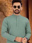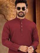 Boasting a sophisticated pattern, this kurta-pyjama for men effortlessly bridges the gap between casual and refined aesthetics. The tasteful design of this mens kurta adds visual interest without overpowering your ensemble, allowing for versatile styling options suitable for various occasions, from casual outings to festive gatherings. This kurta-pyjama for mens festival is suitable ethnic wear for traditional occassions.