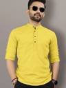Thanks to its solid pattern, this kurta is a versatile piece that pairs effortlessly with a range of trousers, jeans, or traditional bottoms. So, whether styled with light-coloured shorts for a relaxed look or layered with a waistcoat for a more formal appearance, it adapts seamlessly to different settings.
