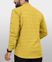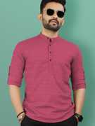 Thanks to its solid pattern, this kurta is a versatile piece that pairs effortlessly with a range of trousers, jeans, or traditional bottoms. So, whether styled with light-coloured shorts for a relaxed look or layered with a waistcoat for a more formal appearance, it adapts seamlessly to different settings.