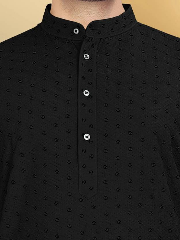 VeBNoR Men Self Design Straight Kurta (Black)