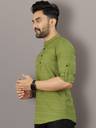 Thanks to its solid pattern, this kurta is a versatile piece that pairs effortlessly with a range of trousers, jeans, or traditional bottoms. So, whether styled with light-coloured shorts for a relaxed look or layered with a waistcoat for a more formal appearance, it adapts seamlessly to different settings.