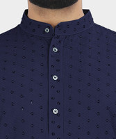 Provided with a mandarin collar and a buttoned placket, this kurta combines traditional elements with a contemporary touch. The neatly placed buttons enhance the look and also allow for easy wear. These small yet functional details contribute to its stylish and practical appeal, which makes it a valuable addition to any wardrobe.