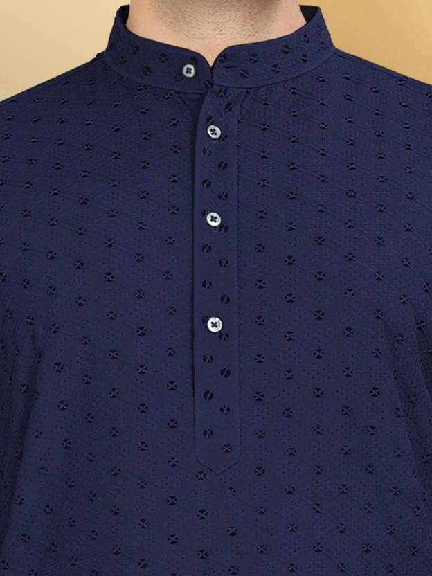 VeBNoR Men Self Design Straight Kurta (Dark Blue)