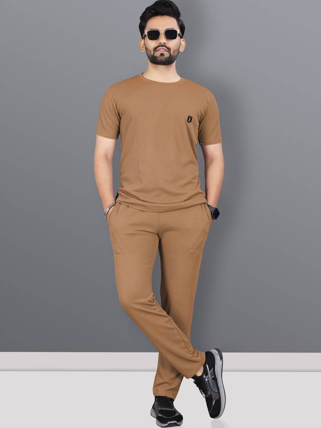 VeBNoR Men Solid Brown Night Suit Set