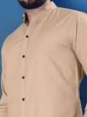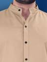 Designed with a secure buttoned closure, this shirt ensures ease of wear and removal. The high-quality buttons are firmly stitched which reduces the chances of them coming loose over time. The mandarin collar adds a modern touch, lending an understated elegance to the design, while the curved hem offers a stylish finish that can be worn tucked or untucked, depending on the occasion.
