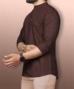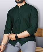 Designed with a secure buttoned closure, this shirt ensures ease of wear and removal. The high-quality buttons are firmly stitched which reduces the chances of them coming loose over time. The mandarin collar adds a modern touch, lending an understated elegance to the design, while the curved hem offers a stylish finish that can be worn tucked or untucked, depending on the occasion.