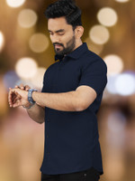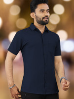 VeBNoR Men Solid Casual Dark Blue Shirt