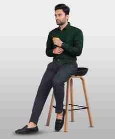 DEEMOON Men Regular Fit Solid Button Down Collar Formal Shirt